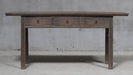 - Shanxi Elm Wood 130 Years Old Console Table with Drawers Natural by Florabelle Living brings rustic charm to your home. Crafted from reclaimed elm wood, it features three drawers for convenient storage.