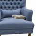 • The Bayside Hamptons Buttoned Armchair in navy is made from high-quality linen fabric and features durable wooden legs. Its buttoned detailing offers a refined, classic look.