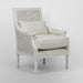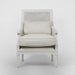 - The Hicks Armchair White and Natural by Florabelle Living features a solid oak frame with hand-carved details and soft upholstery for comfort. Its white finish adds a modern touch, blending classic style with contemporary comfort.