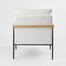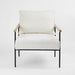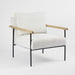 - The Liam Armchair in Ivory and Natural by Florabelle Living combines classic and modern design. It features a sturdy metal base, wooden armrests, and soft neutral upholstery with a pillow backrest for comfort.