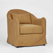 • The Ville Armchair with Nutmeg Slip Cover in Brown by Florabelle Living combines comfort and elegance with its soft, slip-covered design. The nutmeg brown fabric provides a warm and inviting tone, while the slipcover allows for easy cleaning and maintenance.