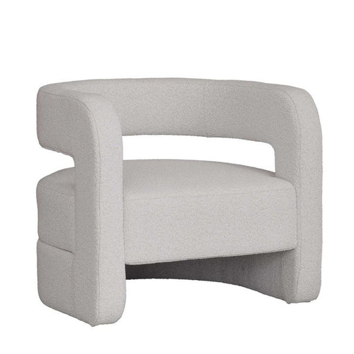 MRD HomeProduct Description The Cora Chair Vanilla Boucle in Off White by MRD Home offers a sleek circular design with a high back and curved armrests for...