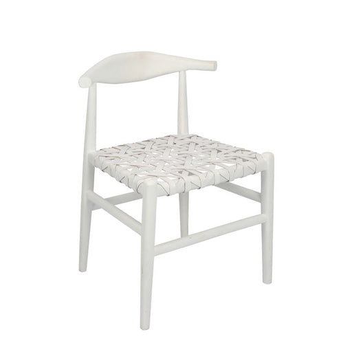MRD HomeProduct Description The Sorren Chair in White by MRD Home blends modern style with timeless design. It features a hand-woven leather seat, a low c...