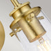 • The Braelyn Vanity 2 Light brings vintage industrial charm to your space. Its clear seeded glass shade, inspired by classic 19th-century glass jars, beautifully complements the brushed brass finish, creating a timeless design