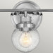 • The Poppy Vanity 3 Light by Quintiesse Lighting combines mid-century elegance with contemporary sophistication. Its clear seeded glass spheres beautifully complement the ribbed Polished Chrome framework, creating an airy yet refined silhouette.