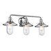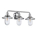 The Rigby Vanity 3 Light by Quintiesse Lighting draws inspiration from classic American barn lights, reimagined with chic retro appeal. Combining industrial and vintage design elements, it features an polished chrome finish, complemented by clear seeded glass protectors.