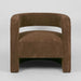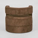 - The Cleo Chair Cinnamon in Brown by MRD Home combines style and comfort with its cinnamon brown corduroy fabric. Its circular shape and curved backrest with armrests offer cozy support, perfect for any modern space.