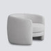 • The Cora Chair Vanilla Boucle in Off White by MRD Home offers a sleek circular design with a high back and curved armrests for ultimate comfort. Crafted with a sturdy frame and high-density foam, it provides excellent support.