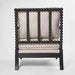 • The Elizabeth Bobbin Hamptons Armchair combines classic style with modern elegance, featuring a black wooden frame with intricate bobbin detailing. Upholstered in soft fabric, it offers both comfort and sophistication.