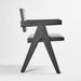 - The Lexi Scissor Armchair features a sleek black finish with a sturdy wooden frame and comfortable upholstery. Its minimalist design and unique scissor-style structure make it a stylish addition to any space.