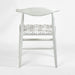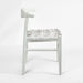 - The Sorren Chair in White by MRD Home blends modern style with timeless design. It features a hand-woven leather seat, a low curved teakwood back, and a matte white finish.