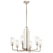 The Kimrose 6 Light Pendant by Quintiesse Lighting in Polished Nickel and Clear offers a stylish and functional lighting solution.