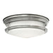The Hadrian Ceiling Flush 2 Light by Quintiesse Lighting is a retro-inspired design featuring a sleek Antique Nickel finish and a opal one-piece glass shade.