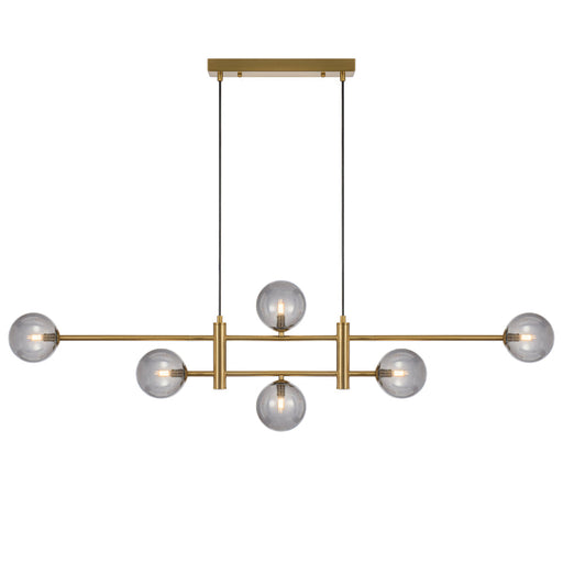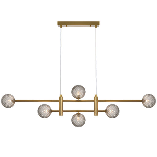 TelbixProduct Description Elevate your indoor space with the Tyson 6 Light Pendant. With an antique gold finish and smoke globes, this pendant adds a t...