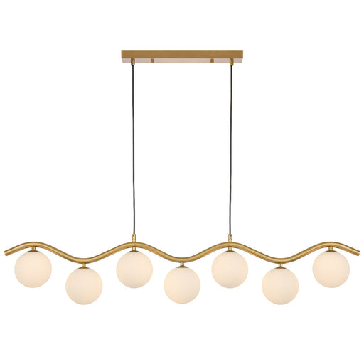 TelbixProduct Description The Orton 7 Light Pendant in an antique gold fixture with Opal Matt shades by Telbix is a chic and distinctive lighting center...