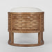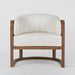- The Weave Teak Wood Armchair in Natural by Florabelle Living combines craftsmanship, comfort, and durability. Featuring a handwoven design, solid teak frame, and 100% outdoor fabric, it's perfect for indoor or outdoor use.