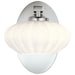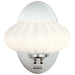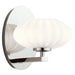 The Pim LED Wall Light showcases a nostalgic mid-century modern design with a sleek polishe chrome finish and a round satin-etched cased opal glass shade. Its versatile style complements both contemporary and transitional interiors