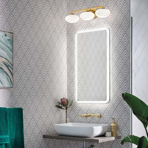 Quintiesse LightingProduct Description The Pim LED Wall 3 Light showcases a nostalgic mid-century modern design with a sleek fox gold finish and a round satin-etche...