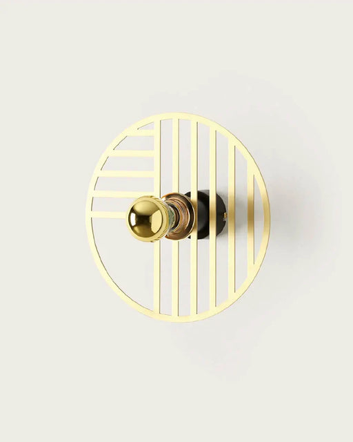 Aromas LightingProduct Description The Line Large Wall Light in Shiny Gold finish by Aromas Lighting features a modern round steel frame with geometric patterns...