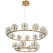 Upgrade your space with the Catania 18 Light Pendant Antique Gold. With integrated LED bulbs and a warm 3000k color temperature, this pendant offers an inviting glow and energy efficiency.